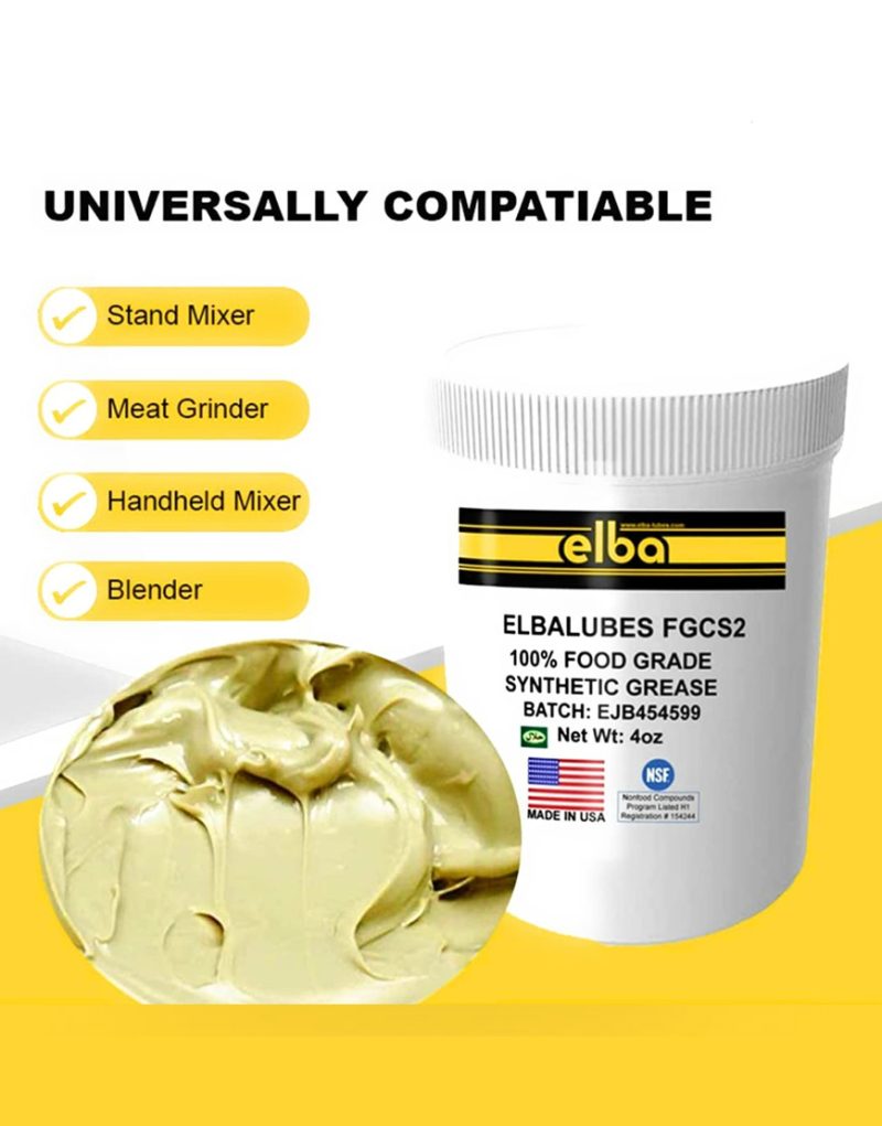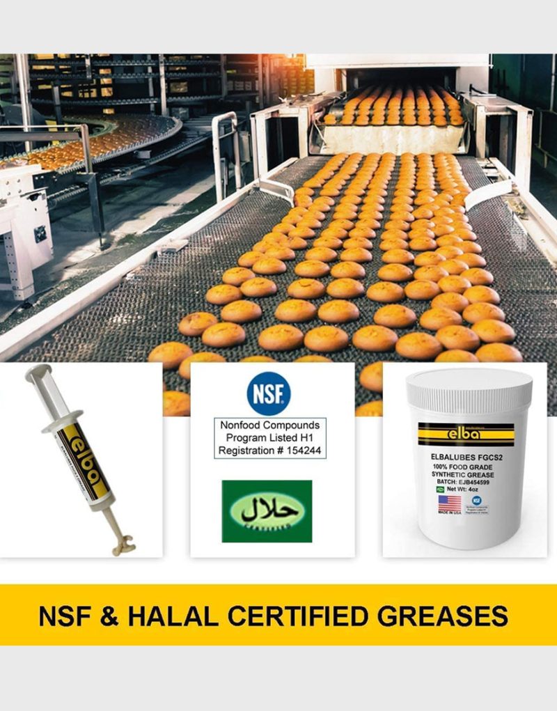 - NSF H-1 REGISTERED & MADE IN THE USA: Safety is a top priority, NSF H-1 Registered food grade grease which exceeds all industry standards. Furthermore, our entire grease kits are MANUFACTURED AND ASSEMBLED IN THE USA to support American jobs and guarantee top quality.The synthetic base stock gives ElbaLubes FGCS exceptional low temperature properties and thermal stability over a wide temperature range.