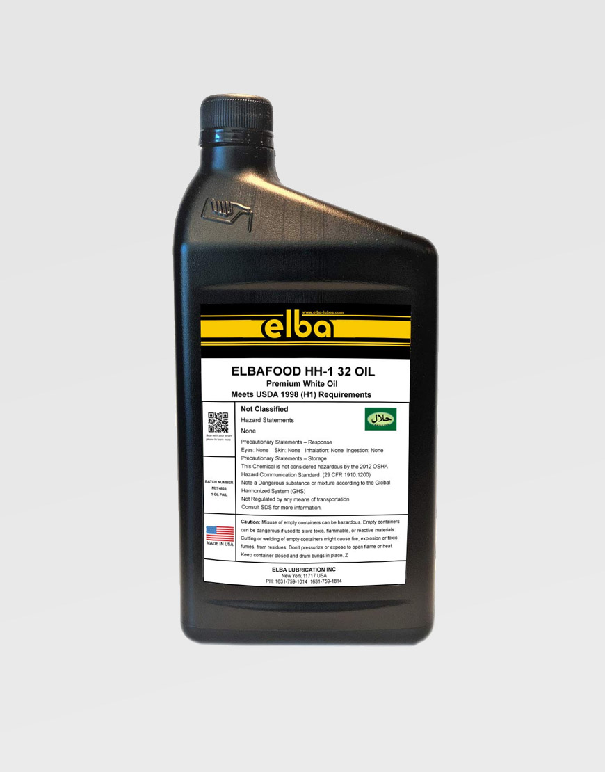 Elba Food HH-1 Food Grade Chain, Vacuum Pump and Hydraulic Oils are specially formulated to provide superior lubrication in food plant machinery these food grade H-1 oils provide outstanding anti-ware protection, are compounded to prevent rusting in the presence of moisture, are non-foaming and have rapid water separation characteristic.![]()